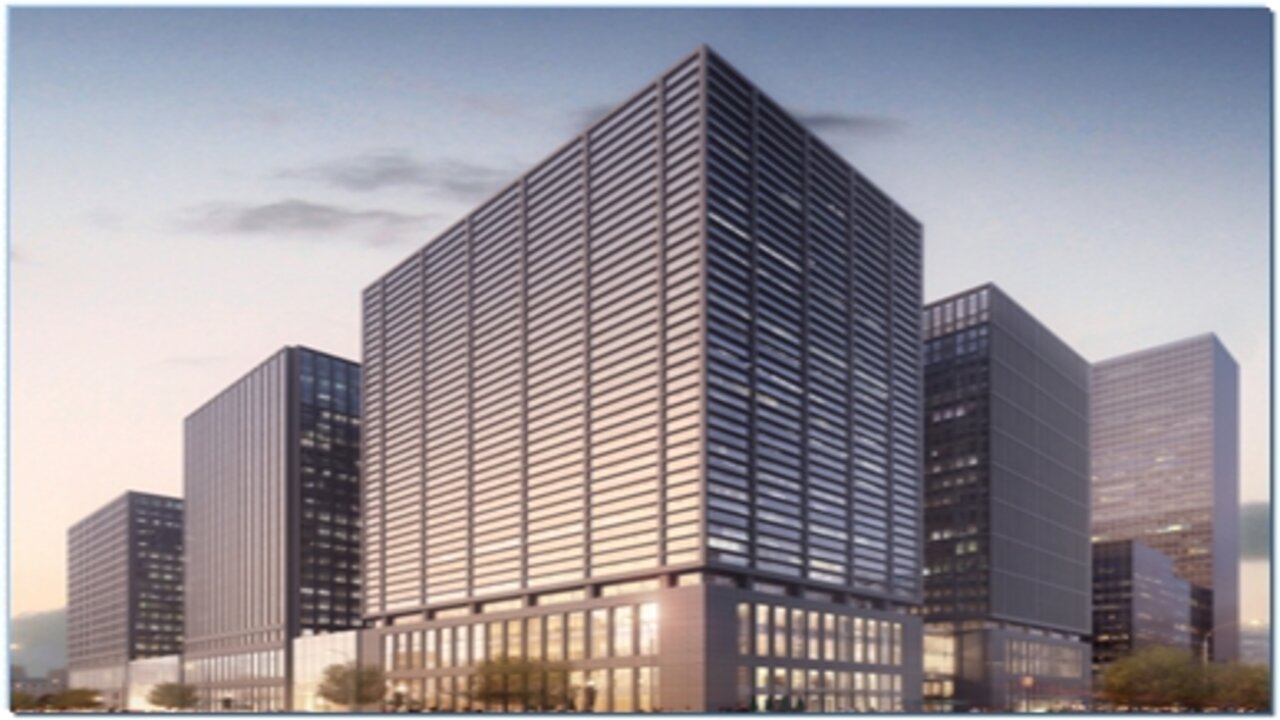 金融街(月坛)中心项目总建筑面积为38万平方米,包括住宅、体育及办公商业用地三部分。办公楼共5栋,其中2栋为19层,建筑高度82m;3栋为23层,建筑高度为99.9m;裙房部分为商业。工程整体设5层地下室。1-5#公建为钢框架-核心筒结构,6#为组合结构。