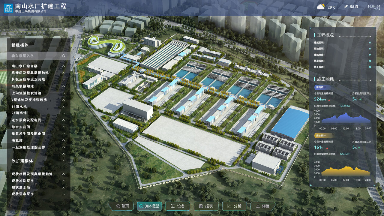 南山水厂位于深圳市南山区京港澳高速公路以南,现状供水能力每天 20万立方:为确保区域用水及推动城市的发展规划,水厂亟待扩建。本工程共分两阶段进行,一阶段完工后先投入每天50万立方米生产线替代现有产线运营,待水厂竣工后,供水规模达每天 120万立方米。